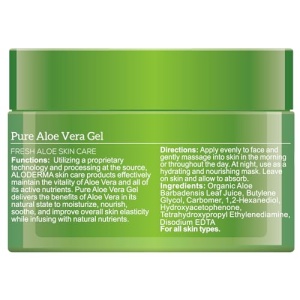 Details: Add pure Aloe Vera to your skincare routine and allow its natural properties to moisturize, nourish, soothe, and improve overall skin elasticity. We never use aloe powder or concentrates. Our Pure Aloe Vera Gel contains 96% fresh organic Aloe juice. Just apply evenly and massage into the skin morning and night or use as a hydrating mask at night. Perfect for everyday use on all skin types, our Pure Aloe Vera Gel is a natural soothing and moisturizing treatment for your daily skin care regimen. At Aloderma, we capture the true essence and peak bioactivity of centuries old Aloe Vera. By hand harvesting on our organically fertilized and Ecocert certified plantations, we are able to give you quality products while respecting the environment. Through proprietary SATT technology, we can process and bottle our products within hours of harvesting on our Aloe Vera plantations. With fresh Aloe Vera, respect for nature, and proprietary technology, Aloderma delivers high quality products for your skin.