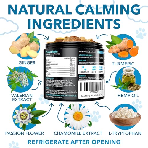 - Natural Calming Aid – Is your dog showing signs of pain and discomfort while moving about? Our natural Calming Treats for dogs will provide quick and lasting relief from sore, painful and aching joints