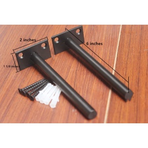 - Size – Rod is 6 inches long with 12mm diameter. Backplate is 2 inches wide and 1-1/8 inches height. Our hidden shelf brackets hardware pack includes 8 x metal floating brackets, 16 x heavy-duty screws, 16 x drywall anchors