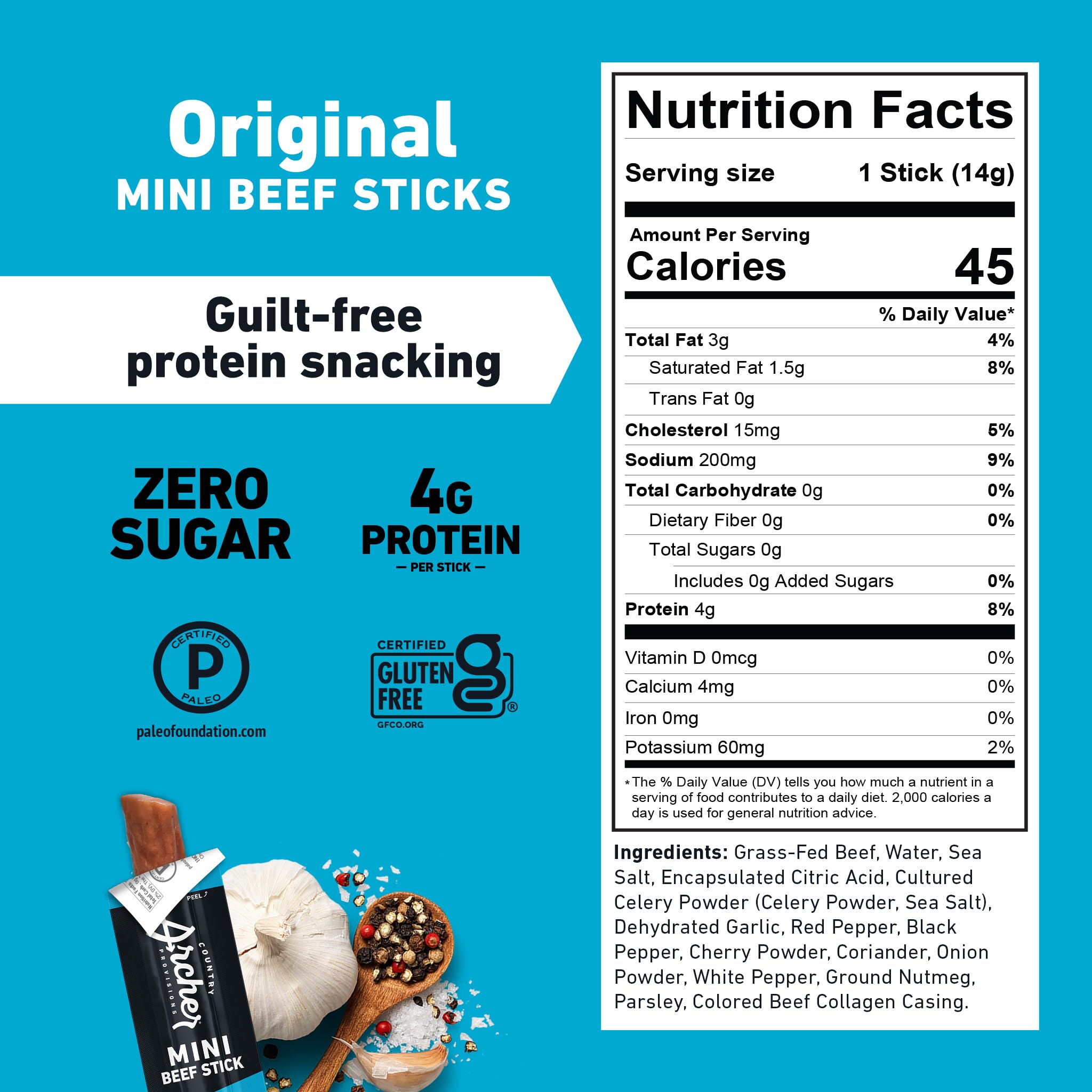 - 100% GRASS-FED BEEF: Each snack pack contains 28 Mini Beef Jerky Sticks, Original Flavor