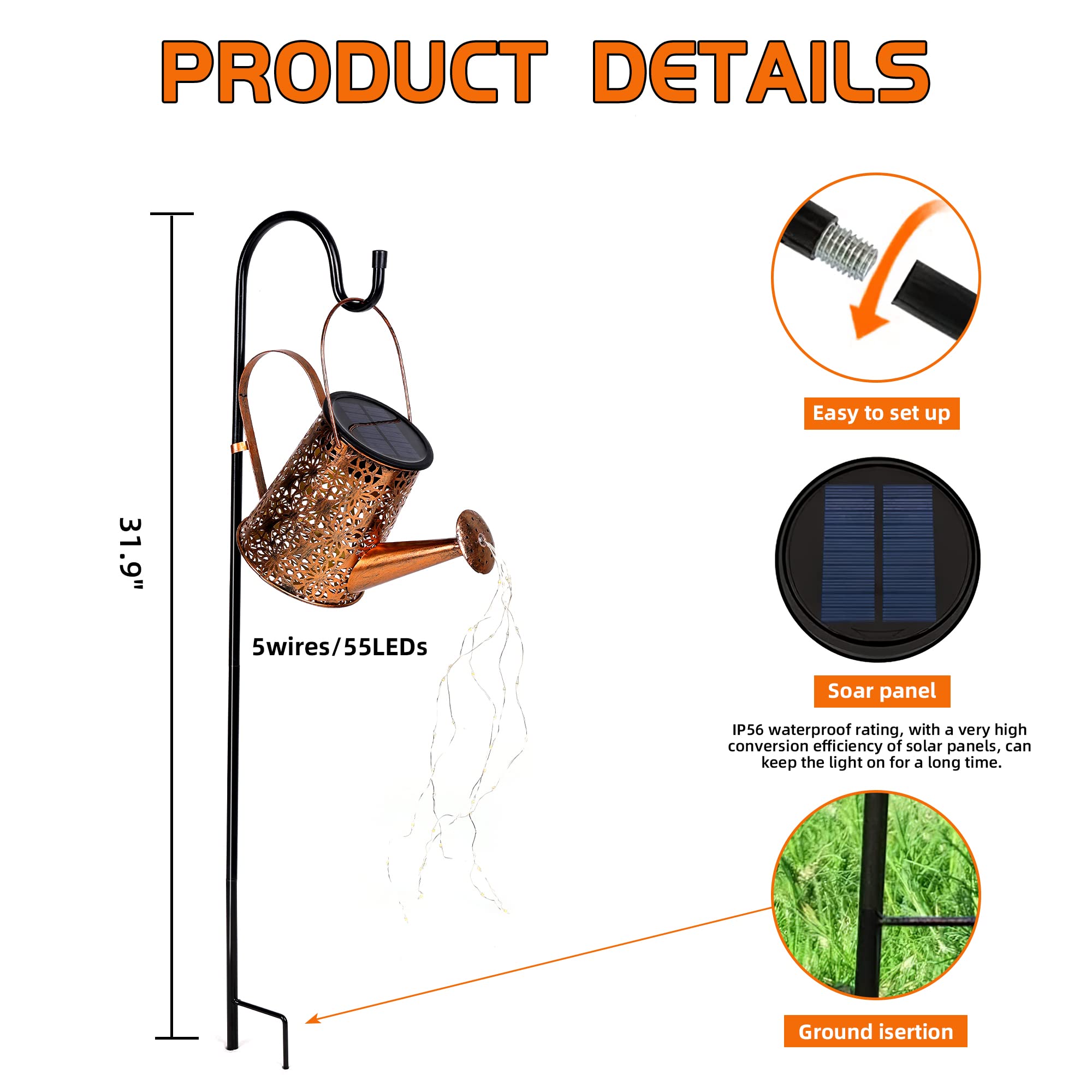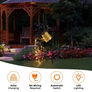 • ✨【Solar Watering Can with Lights】Otdair Solar Garden Light comes with 5 string lights (56 LEDs) that can be easily bent and shaped into any shape you like.Choose a special spot in your garden or yard, hang a solar watering can light, and the light will look like it’s watering.