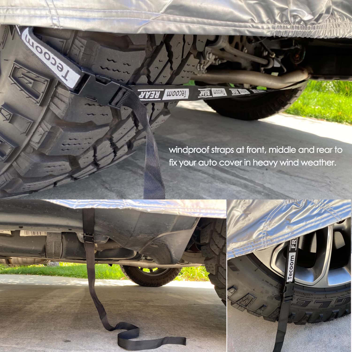 • 【All Weather Protection】Tecoom car covers is perfect for indoor and outdoor use, no matter the sun or the cold weather, protects your car safe from UV rays, snow, rain, frost, sand,dust, leaves, branches, birds dropping.