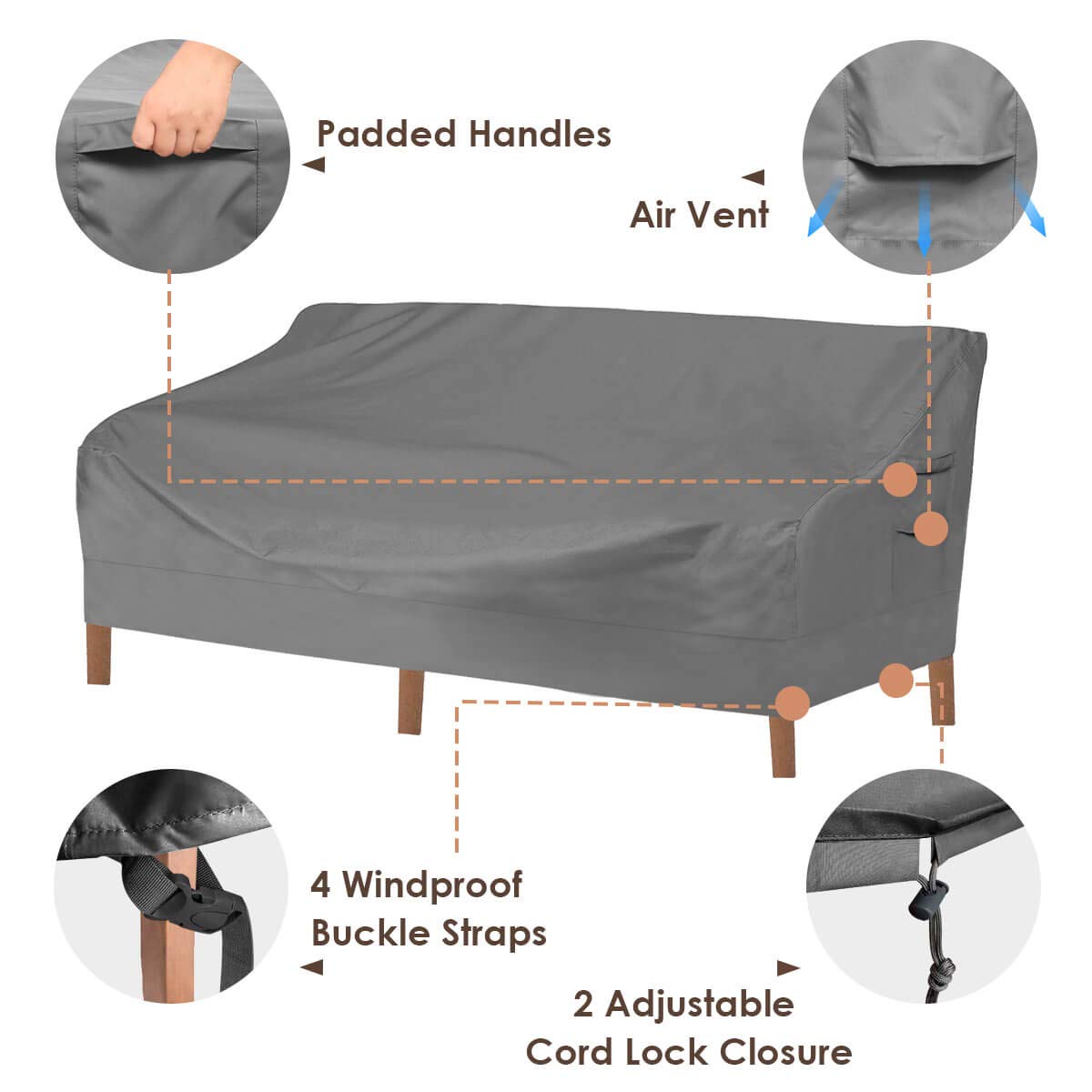 - Maximum Protection:Heavy Duty Outdoor Sofa Covers are made of 600D polyester oxford fabric and PVC layer which is weather-resistant, waterproof & dust-proof.Maximally protect your patio sofa from outdoor elements like sun, rain, winds, hailstorms, bird droppings etc.