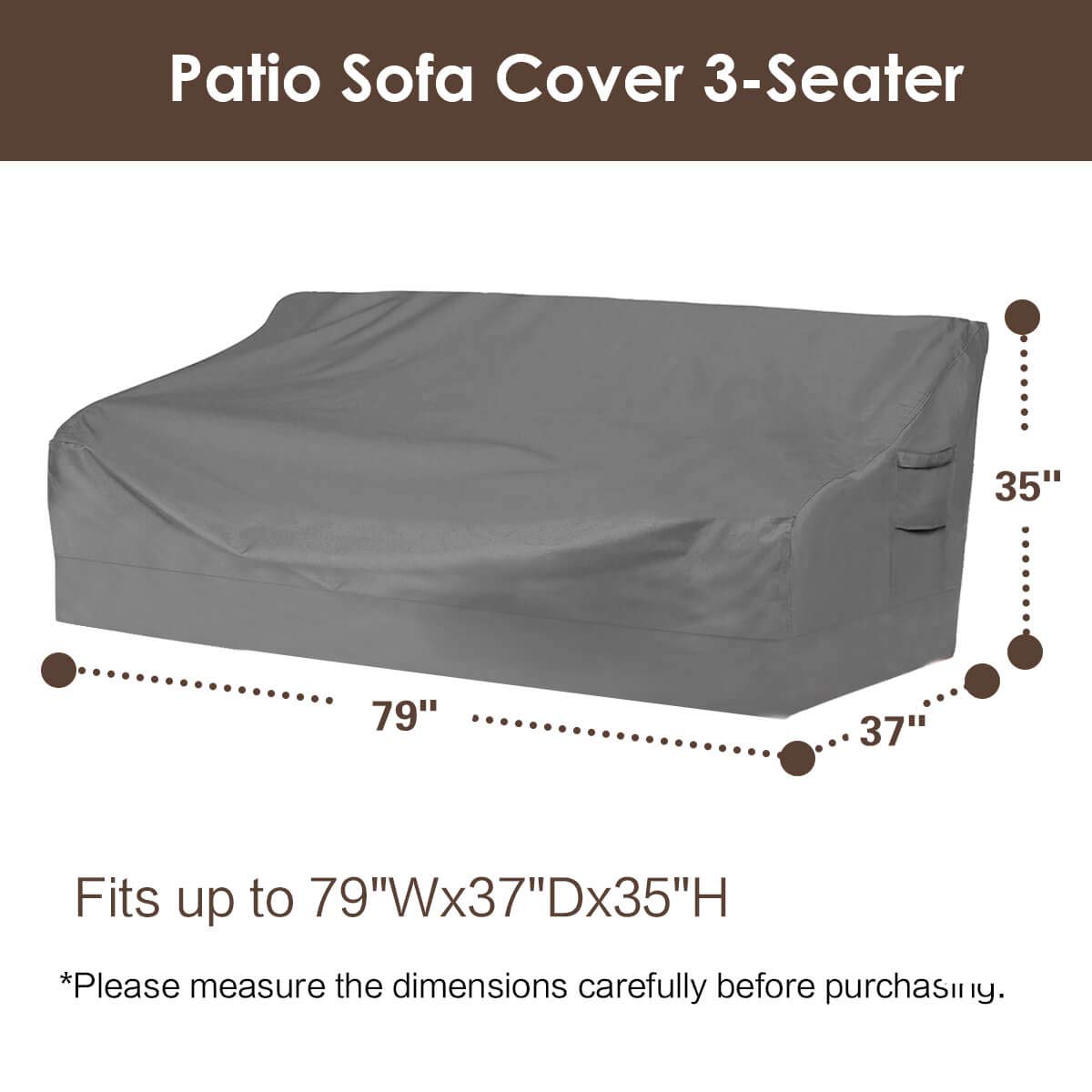- Size:We have multiple sizes for your choice.Guaranteed to fit the different styles and brands benches, loveseats or 3-seater sofas of your outdoor garden, yard or patio.This cover fits up to 79″W x 37″D x 35″H,please measure your sofa before purchasing.